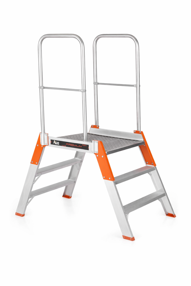 Profesionálny obojstranný hliníkový mostík PREMIUM počet nášľapov 1x3, rozmery plošinky 560 x 778 mm, max. výška plošinky 0,62 m a šírka 689 mm. Plošina je vyrobená z protišmykového hliníkového profilu graepel, mostík tak zvládne najťažšie prevádzky a poveternostné podmienky. Ako doplnok možno objednať pevné alebo odpružené kolieska.